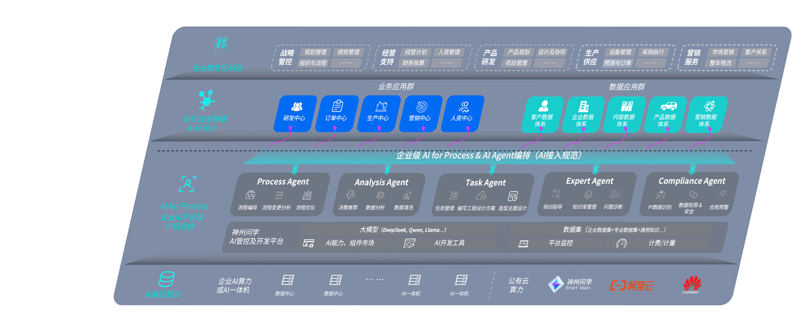 尊龙z6问学智车解决方案是一套基于AI技术的汽车行业智能化系统,,,,覆盖从底层算力到顶层AI应用的全栈方案。。。方案由算力层、、、模型层和应用层组成:算力层,,方案支持多种一体机配置,,,具备云端灵活部署、、、多云适配以及动态优化计算资源的能力;模型层,,,,尊龙z6问学平台版提供了企业级AI应用一站式构建与管理平台,,支持基于后训练强化技术的汽车企业专属模型的训练、、、、评测和运营;应用层,,尊龙z6问学DeepSeek版提供包括超级员工、、、、智能招采、、智能营销、、、智能客服、、AI for BI等一系列解决方案,,,可助力汽车行业实现数字化转型,,,,让管理更智能、、响应更敏捷。。。